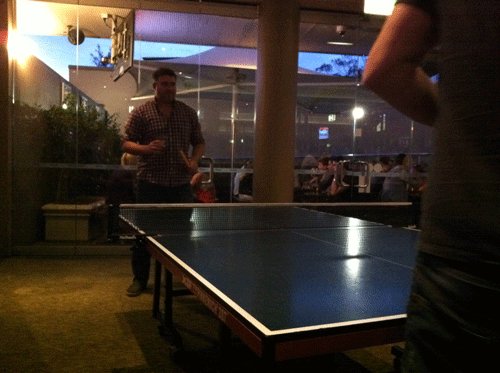 I've seen pool tables in pubs but this is the first time I've seen a ping pong table..