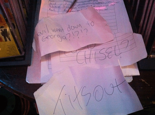 As a band playing in pubs and clubs, we are often handed notes. Here's some from the Jannali Inn a few weeks back: