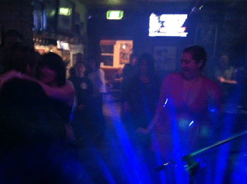 Anyway, we did our stuff, people danced and we did some encores. The dancers at the front were so enthusiastic I asked if they'd repeat their enthusiasm for the purposes of making us look good on youtube. they kindly obliged. Here's me doing my best Invader Zim impression as we coax a little extra praise from the audience.