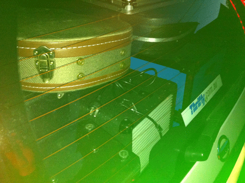 Now that I have my new Harmonica case (the Harp Gaurdian 5000), wonky stages and dancing loons do not bother me. With the bass drum to my immediate left, the thump-thump knocked my harp case off its chair no less than 3 separate times, in the first two songs, which normally would have led to the scattering of harmonicas and much chagrin for me as I scuttle around trying to fix it, but NO! Thanks to the latest in MJEB Labs Technology, everything stayed put.